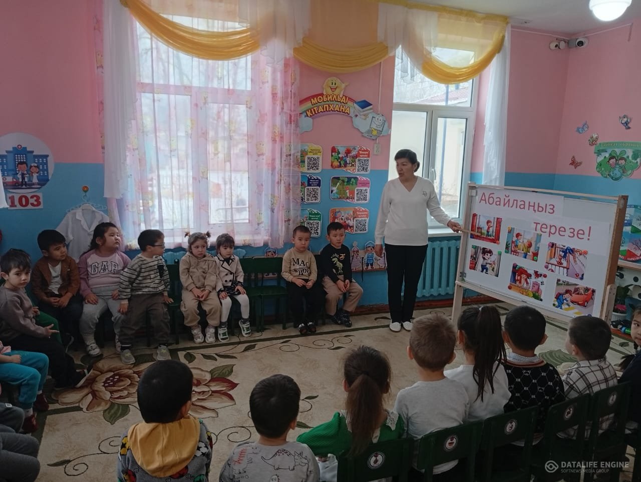 Қауіпсіздікті қамтамасыз етуге бағытталған балалар әрекеті түрлерінің тақырыптық жоспары бойынша "Ботақан" ересек тобында "Абайлаңыз, терезе" тақырыбында ҰІӘ өткізілді.